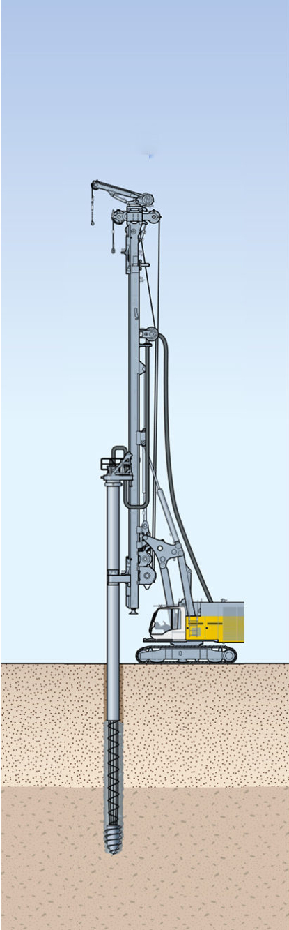 Betonieren und Ziehen des Bohrrohrs, die Fußspitze verbleibt im Boden